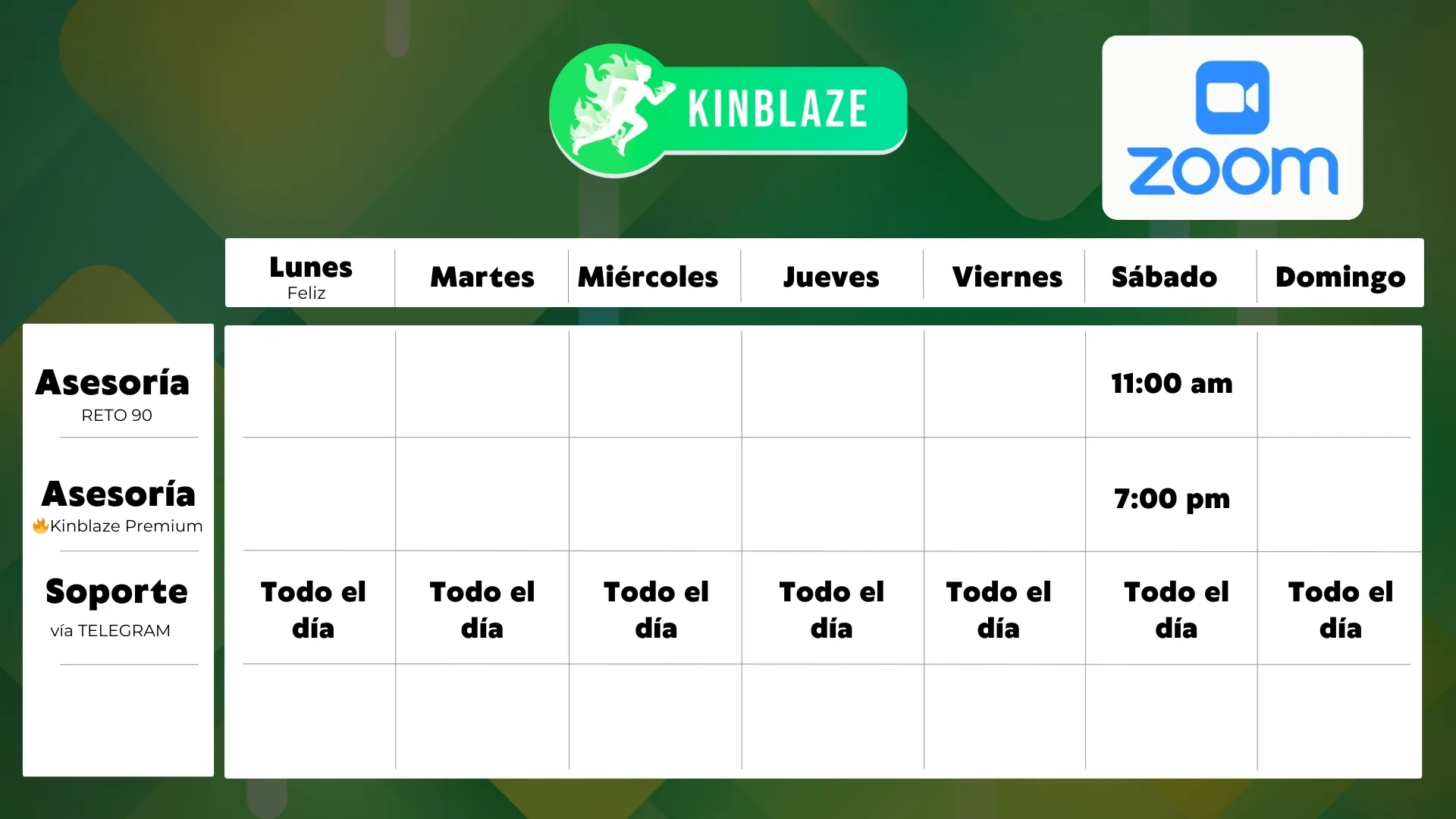 Soporte vía Telegram de lunes a domingo.